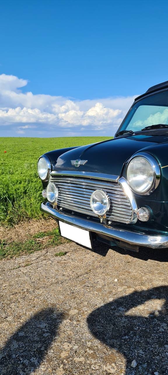 La nostra Mini British Open del 1997, nel suo elegante British Green, non è solo un’auto: è un piccolo viaggio nel tempo, un compagno fedele che aggiunge stile e romanticismo ad ogni evento.